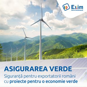 Exim Banca Românească a lansat Asigurarea verde pentru exportatori cu proiecte care contribuie la reducerea impactului schimbărilor climatice, se arată într-un comunicat al băncii.