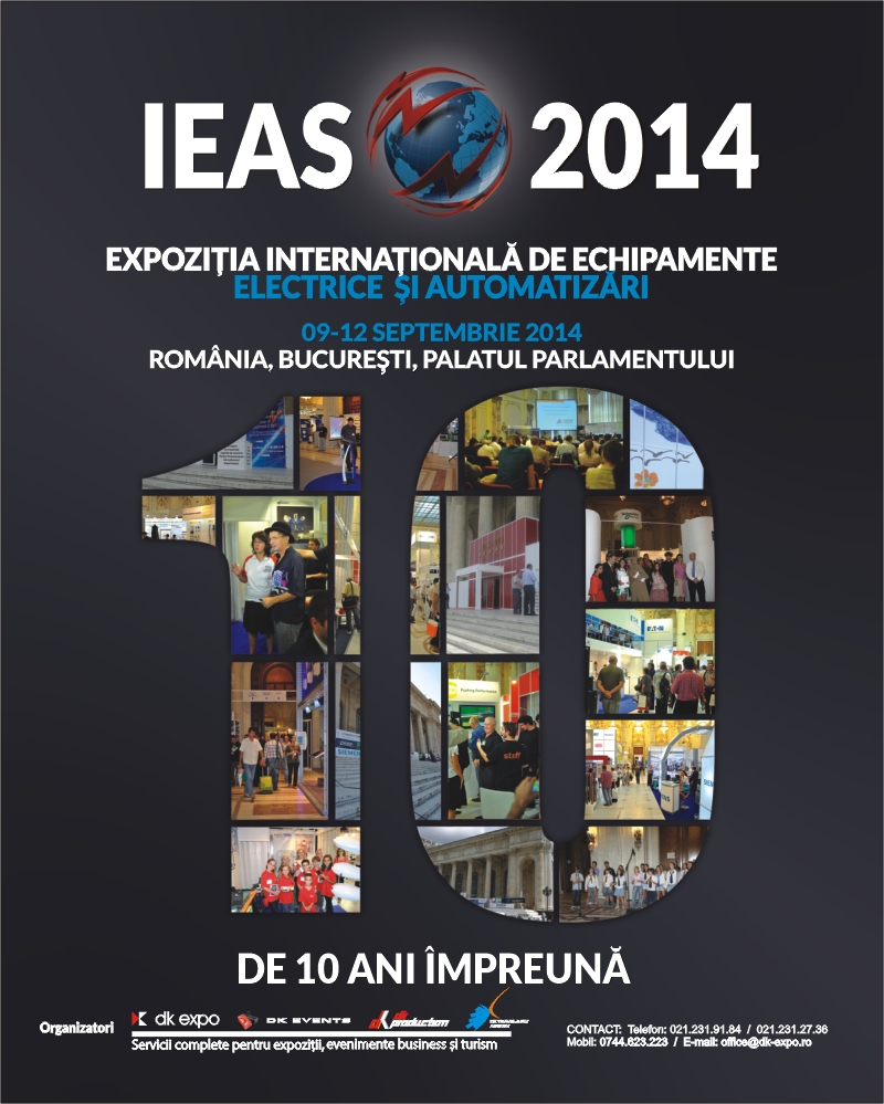 IEAS 2014Săptămâna viitoare va începe cel mai important eveniment dedicat energiei şi industriei din România, International Electric&Automation Show, IEAS. Ediţia aniversară, 10 ani de IEAS, se va desfăşura între 9 şi 12 septembrie la Palatul Parlamentului.