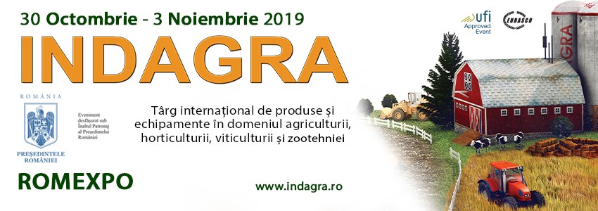 Cea mai importantă manifestare cu profil agricol din România, Indagra 2019, se desfășoară în perioada 30 octombrie – 3 noiembrie la Romexpo şi reuneşte mai mult de 540 de companii din peste 25 de ţări.