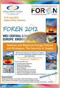 Specialişti în domeniul energetic, reprezentanţi ai companiilor din sector din peste 30 de ţări au participat la cea de a 11-a ediţie a Forumului Regional al Energiei pentru Europa Centrală şi de Est – FOREN, eveniment organizat de Comitetul Naţional Român al Consiliului Mondial al Energiei (CNR – CME), în perioada 17 – 21 iunie 2012, la Neptun Olimp.